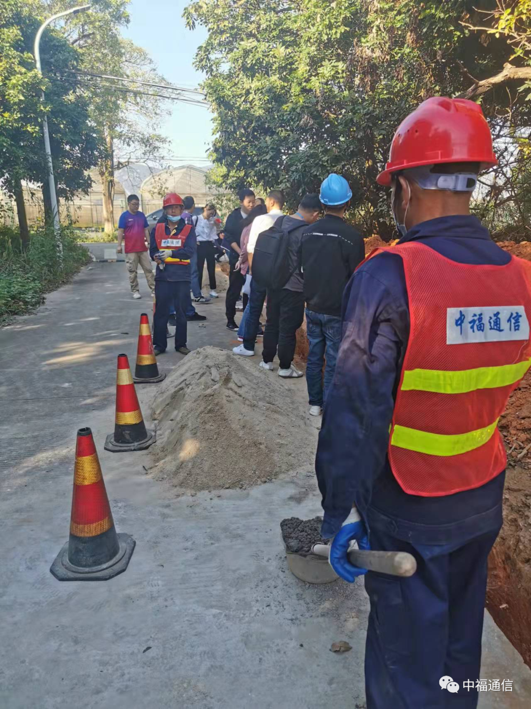 以上圖片為:與會(huì)人員觀摩廈門項(xiàng)目部林煊班組承建的移動(dòng)通信隱蔽工程施工現(xiàn)場